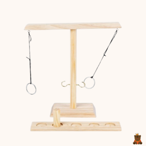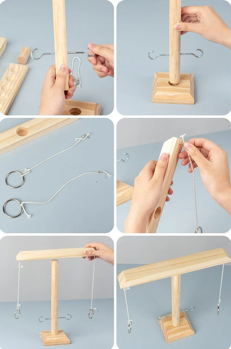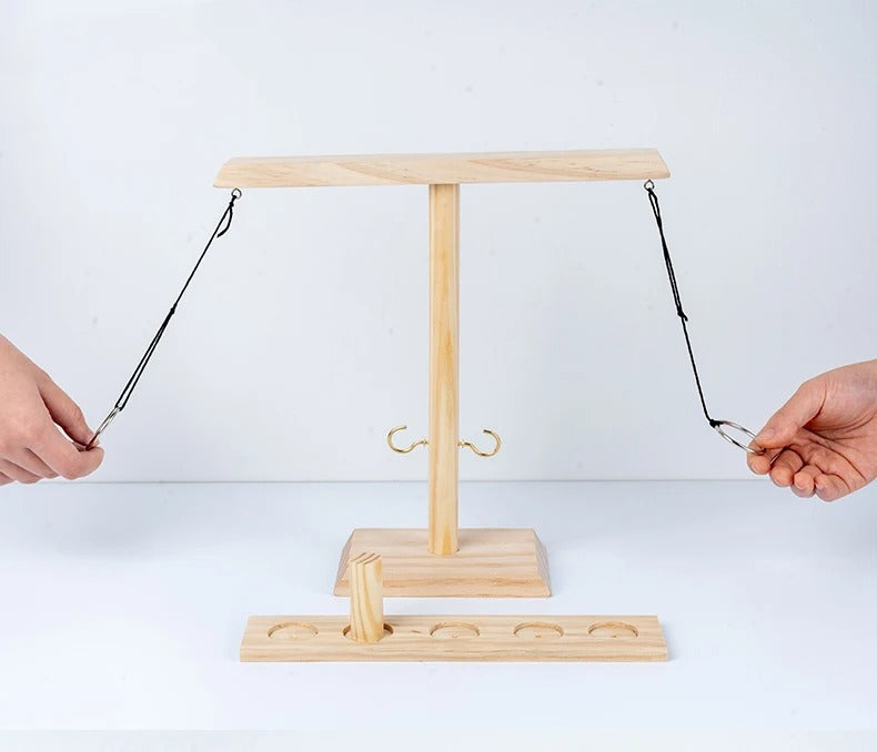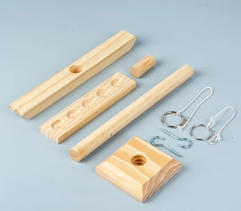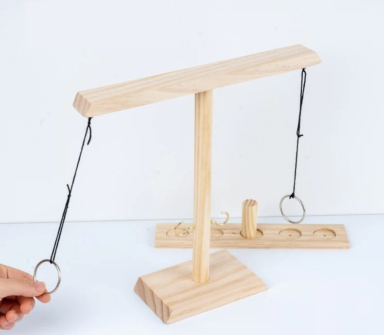 Le jeu est fabriqué en bois naturel lisse et durable, avec des anneaux solides en corde. Résultat : un look soigné, une bonne prise en main, et une excellente résistance, partie après partie.